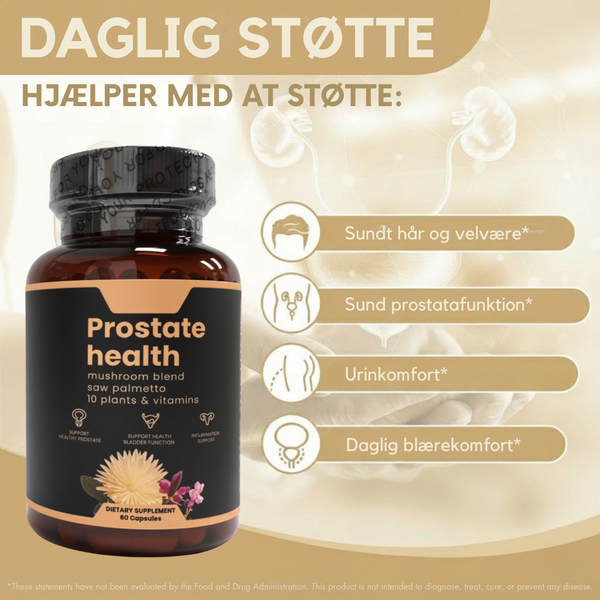 Den indeholder en kraftfuld blanding af Saw Palmetto-frugtekstrakt og et specialiseret svampekompleks, der er kendt for at støtte prostatavæv.