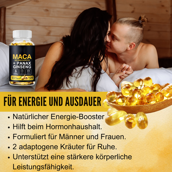 Maca Ashwagandha + Panax Ginseng | Entfesseln Sie unaufhaltsame Leistung und halten Sie ab heute Nacht 7-mal länger durch.