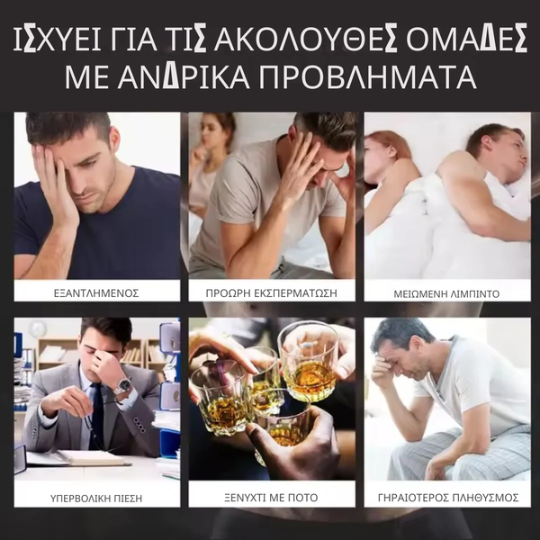 Νιώστε πιο γεμάτοι ενέργεια, κυρίαρχοι και έτοιμοι να κατακτήσετε τον κόσμο με τον συμπυκνωμένο τύπο μας για την ανδρική ενίσχυση. Απαλλαγείτε από το άγχος απόδοσης και μπείτε σε μια ζωή απεριόριστης ζωτικότητας και δύναμης.