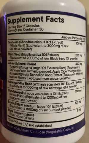 Our unique blend combines Sea Moss, Ashwagandha, and Black Seed Oil, offering a comprehensive approach to health that others don't provide.