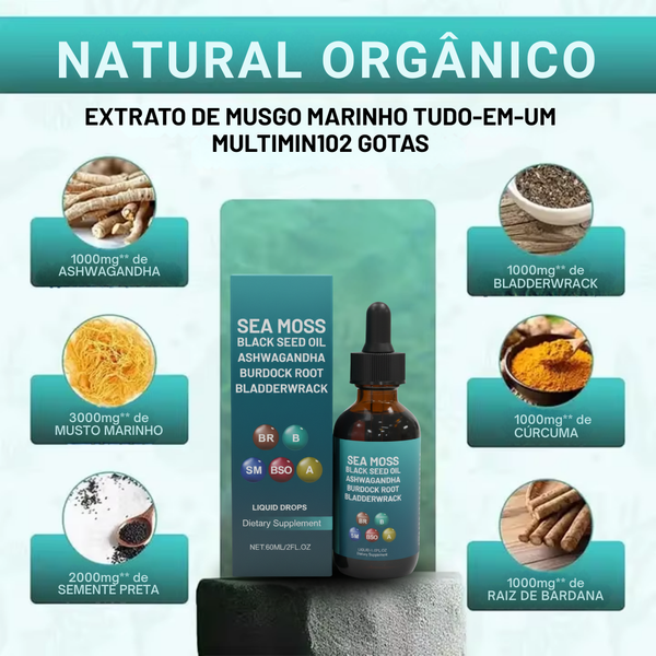 Gotas Líquidas de Musgo Marinho | Desbloqueie o Pico de Desempenho Alfa e Vitalidade Explosiva Instantaneamente